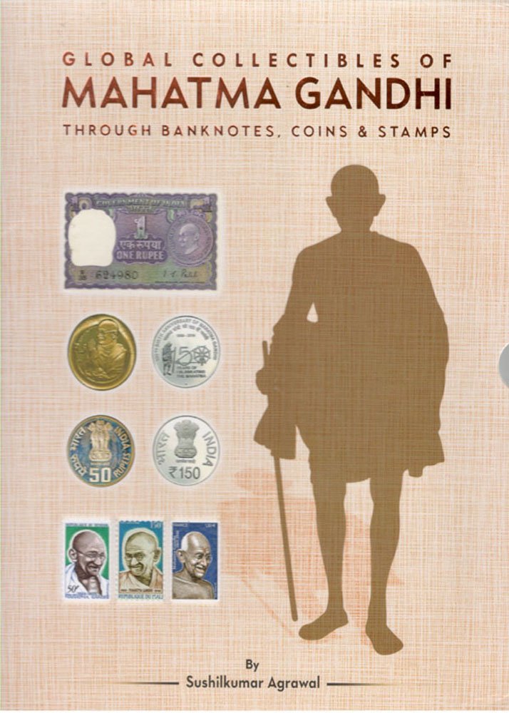 -> Beautifully illustrated with images and details of commemorative Banknotes, Coins and Stamps on Mahatma Gandhi from all over the world.