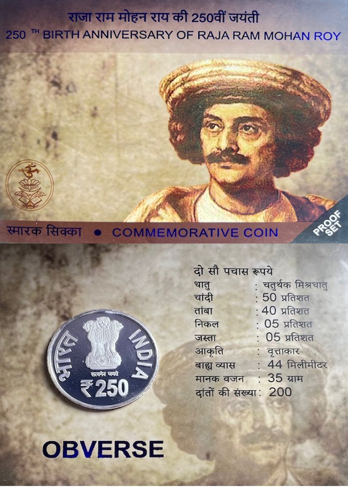 Proof - Rs.250 - 250Th Birth Anniversary Of Raja Ram Mohan Roy (Folder)