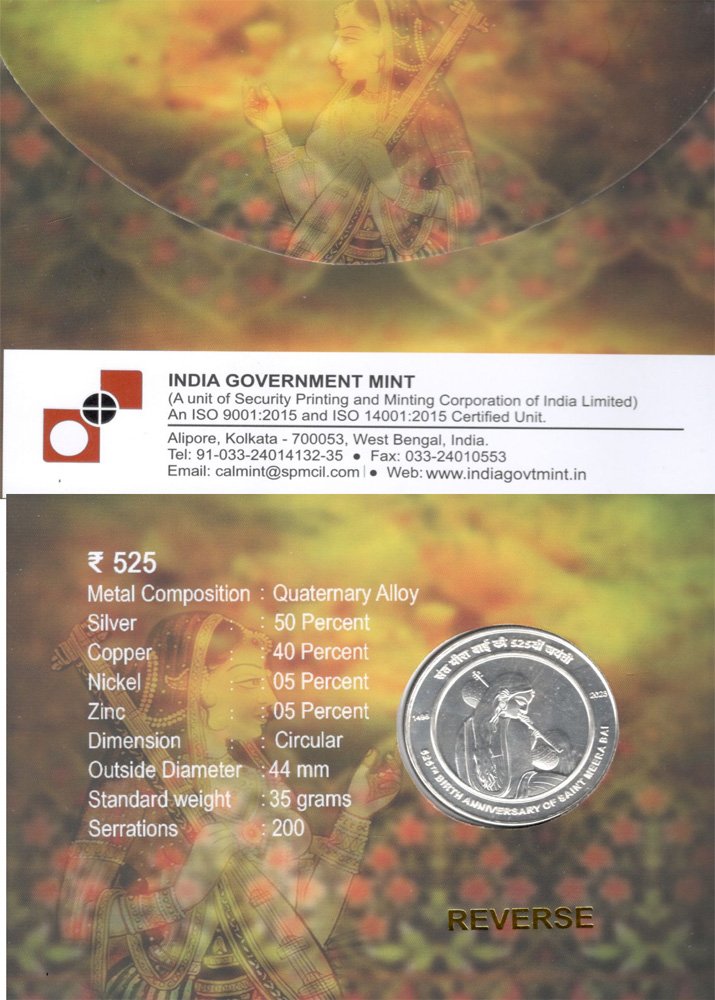 Unc - Rs.525 - 525Th Birth Anniversary Of Saint Meera Bai (Folder)