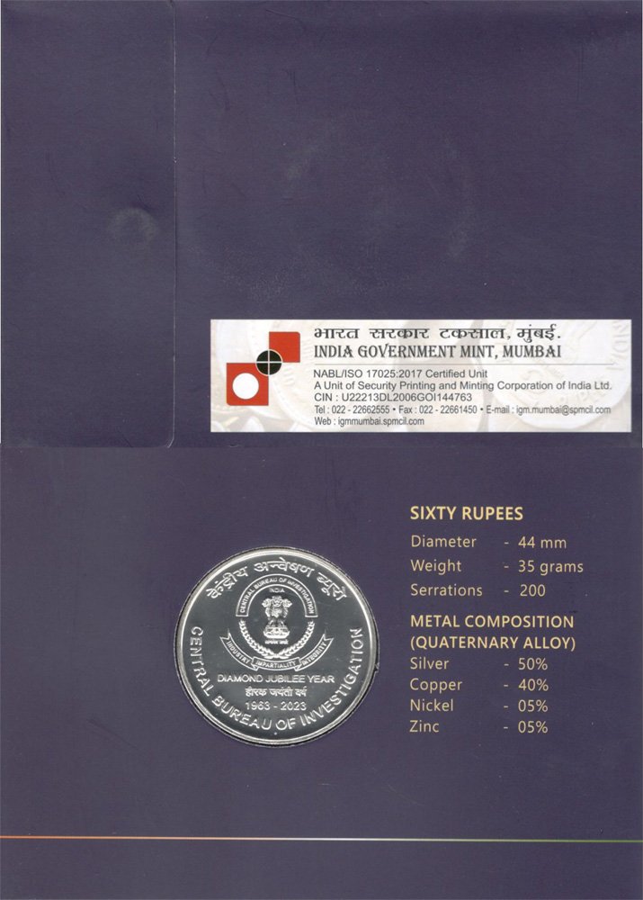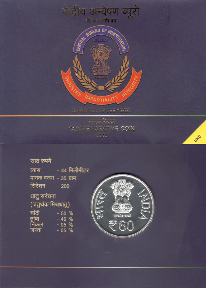 Unc - Rs.60 - Diamond Jubilee Year Of Central Bureau Of Investigation (Folder)